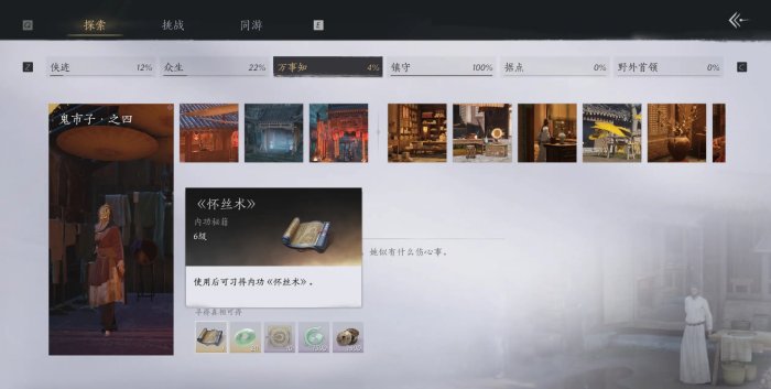 取消乔装,返回鬼衣楼,与银婆婆对话选择赠与,完成万事知后打开万事知界面领取奖励,即可获得怀丝术内功。