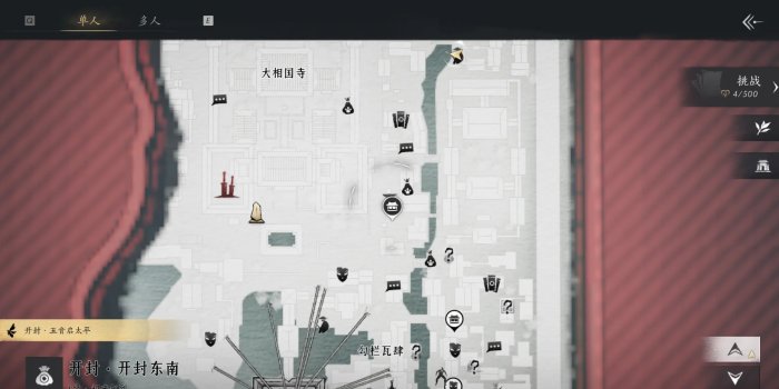 鬼衣楼位置如图示,对话后开启对应万事知——《宫深几许》。