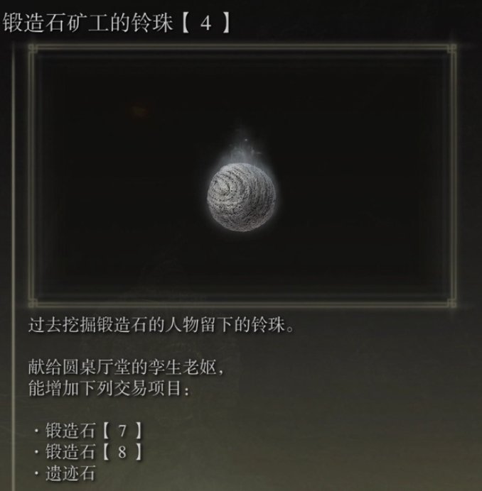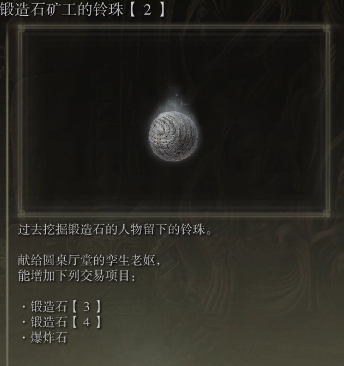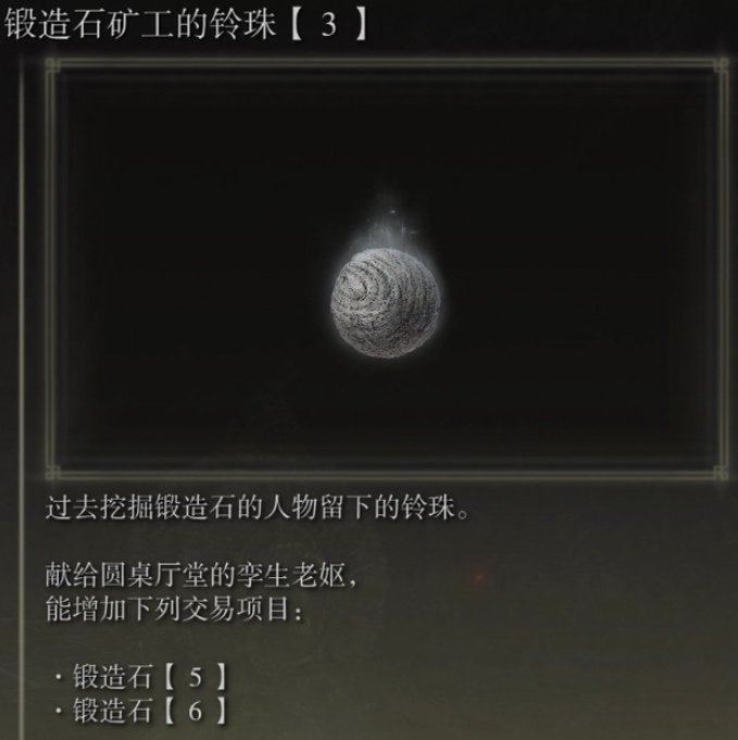 以上就是关于《艾尔登法环》锻造石矿工的铃珠收集攻略的全部内容,希望能够有所帮助。更多艾尔登法环相关攻略点击艾尔登法环专区查看。