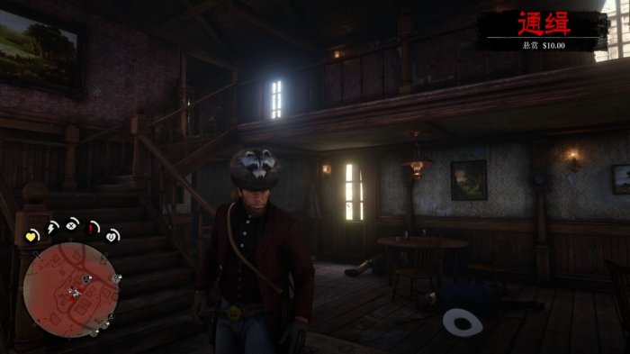 他头上这顶传说浣熊帽比捕兽人处制作的浣熊帽精良不少