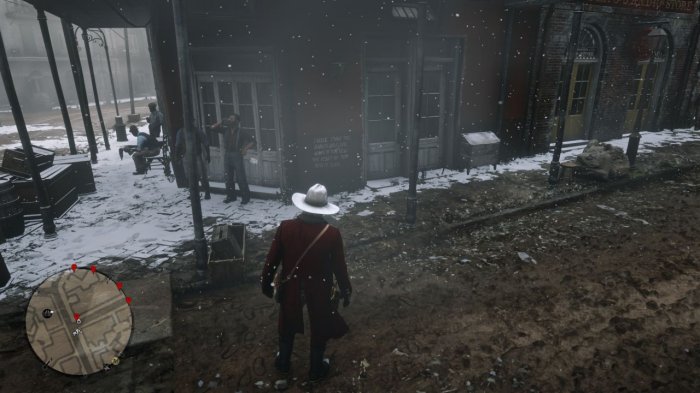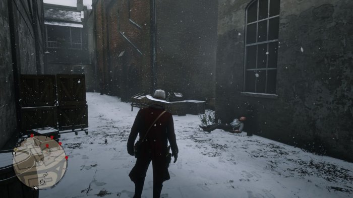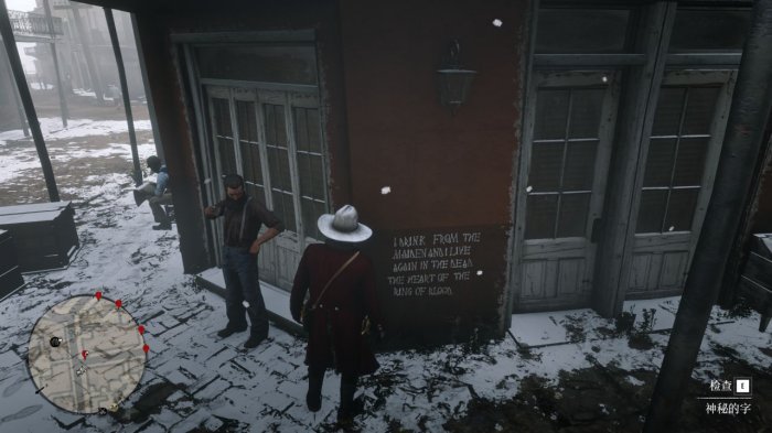 第一处在小餐馆的对面路口(这里的酒保也有一条荣誉任务,帮助他灭老鼠会涨荣誉值)