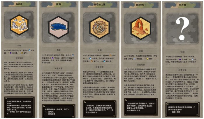 在游戏里,这些自然奇观本身会有产出,又或者会给周围沙漠地块产出~
