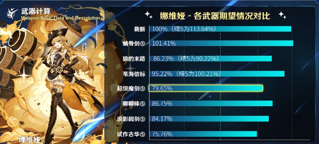 如果是打算专门培养娜维娅的伙伴,即便没有抽取裁断,也更建议以精5螭骨剑为目标。