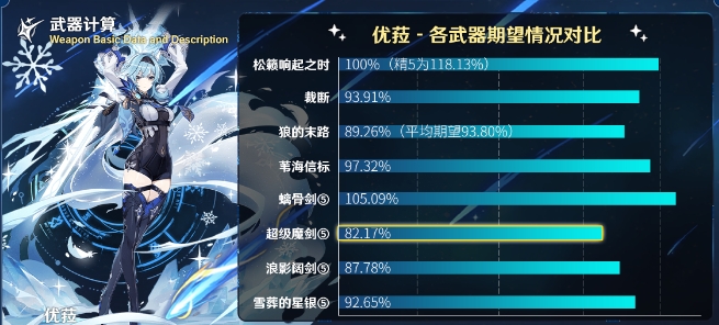 极霸剑给到优菈,也是排在一众武器之后,其优点是比起娜维娅来说,能相对地缓解优菈的大招循环;但在输出模块方面,比起其他武器完全没有优势,属于是没武器给优菈了,或者说优菈都失宠了,您要应付才把极霸剑给人家,下头!