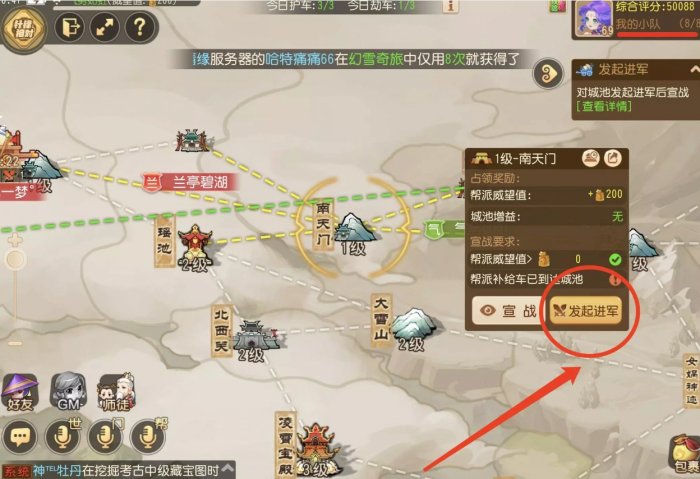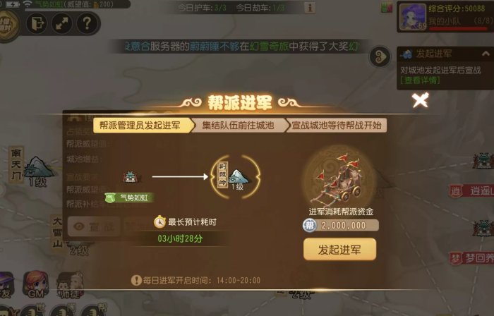 选择链接的城池,即可发起进军(帮派管理发起)每次进军消耗200万帮派资金