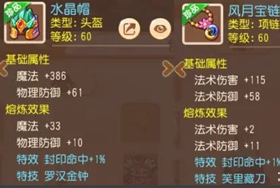 装备上附带的"封印命中+1%",也包括孙婆婆变身卡、凌强特效、结晶