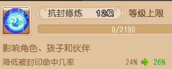 封印成功率=(封印命中-抵抗封印)/1000+技能命中率,人物修炼方面视为等级相同,否则每级相差2%的命中成功率