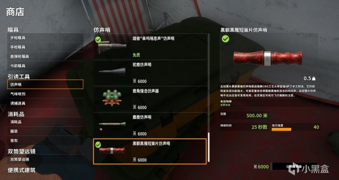必备黑额黑雁诱捕道具和黑额黑雁仿声哨。