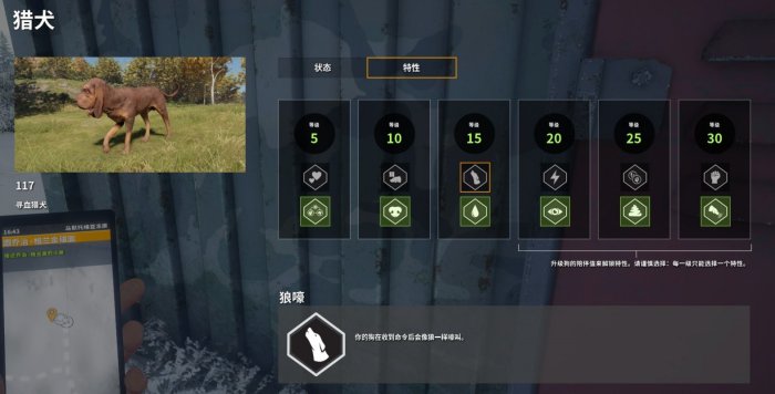 ”震慑叫声“,主动技能,类似张飞的狮吼当阳桥,不过不能吓死动物就是,能让动物陷入短暂的呆滞状态。要注意的是动物难度等级越高,或越机灵的动物,这个呆滞时间越短;所以不要想着拿这个技能去吓8,9级难度的猎物,甚至是珍奇异兽。具体距离我没太试出来,这个技能主要还是用来吓唬冲到脸上的牛牛和狼群。比较建议。