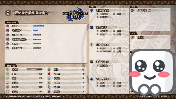 进入集会所7星,这套可以作为进入曙光的起步装备,也可以作为解禁到毕业的过度装备。超心三是留着打完雷神龙再打霸主火龙的,是不强求的。