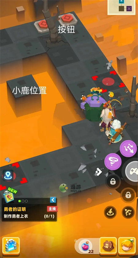 2.小鹿在图二这个位置,通过踩右上两个按钮,走过去对话;