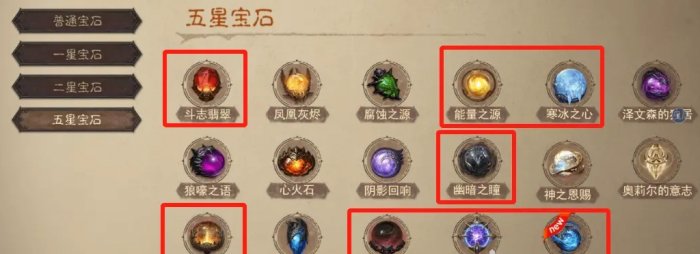 猎魔人5星宝石推荐斗志、能量、星火、幽暗、虚空、深渊6个输出宝石全带满,防御宝石方面夜影之护个人觉得是不可替代的,特别是现在猎魔人战歌比较多的环境更是收益拉满,最后带一个寒冰之心即可。