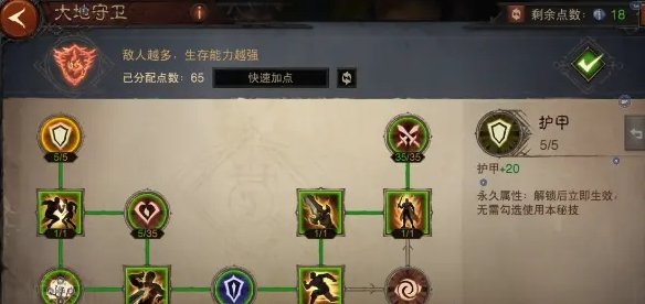 这套玩法不推荐带不败之地了,推荐带新的大地守卫,其核心【大地之甲】3秒内受到5次以上攻击,获得15%最大生命值护盾,5米内又敌人变成提高25%,在人多的时候每名玩家会提升护盾效果50%最多100%,获得30%最大生命值护盾,冷却时间30秒。现在猎魔人也是切后排进场杀敌的近身职业,给到那么厚的护盾还是收益很高,而且前置技能还有上限12%的免伤,8%的生命值提升,这样给护盾的上限也是提高。猎魔人逃脱流搭配这个护盾要比带不败之地效果好很多很多。
