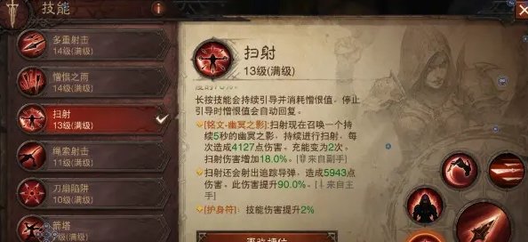 这套BD主要是靠逃脱灵活位移,再用BUFF类的飞刀+憎恨打伤害,扫射主要是放一个幽冥之影在人群中打伤害,这套BD搭配4游商+大地守卫+逃脱本身精华的护盾会非常厚,可以让猎魔人肆无忌惮的和你贴身乱射,而且在现在的战歌环境里也比较克制冰法。