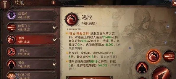 逃脱的新精华以力破禁是这套玩法崛起的重要原因,暗影突刺可以让逃脱向前方突刺并且附加80%减速,逃脱充能2次,伤害增加18%