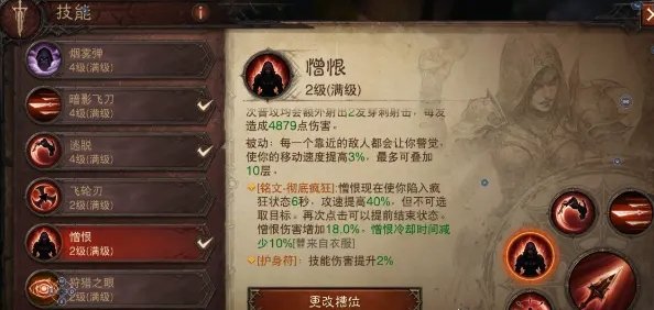 憎恨选择开彻底疯狂这个铭文可以提高攻速并且每次必中敌人,属于闭眼进场全自动攻击的状态,开飞刀憎恨进场即可,和飞刀一样也是吃维图和增益词条的。