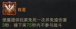 3、救星常规是75秒的冷却,免疫3秒伤害,这个免疫伤害时间在PVP里不衰减,也就是最少我们75秒可以触发一个救星