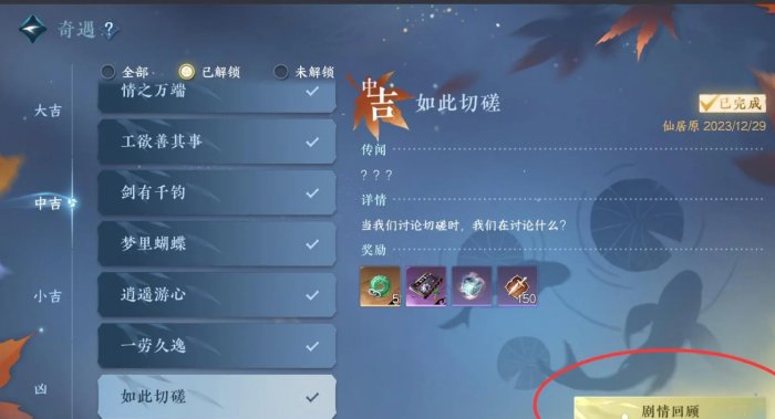 4、回岩石上对话陈渔儿,任务完成 (多选项任务,可以在任务奇遇中剧情回顾)