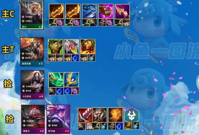 一句话:得糊了玩,建议2阶段2张+有羊刀+法爆/巨杀迹象就可以考虑玩,开局输赢无所谓,留超粉护卫+金克丝潘森过渡,3-2升6搜天选天使,追出3星上8,把整队质量搜搜,上9补7五杀毕业