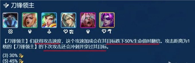 而刀锋领主羁绊不仅能给主C锐雯与副C佛耶戈增加攻速,提升普攻效率,而关键的是能穿过人群,对敌方后排直接产生威胁。