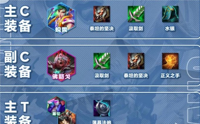 副c佛耶戈:饮血剑+泰坦+正义/8比特转职(金铲子+反曲弓)。