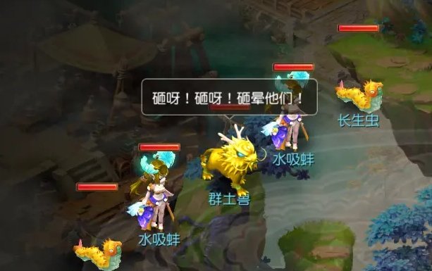 推荐优先击杀水吸蚌(因为我们没有水属性吸收技能),并利用群体法伤顺带击杀长生虫