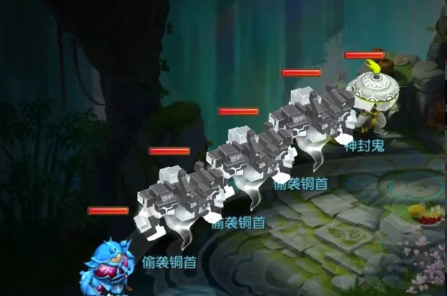 偷袭铜首作为怪物方唯一的输出,因此依次集火铜首即可,利用群法AOE伤害连带击杀六道蟹以及神封鬼