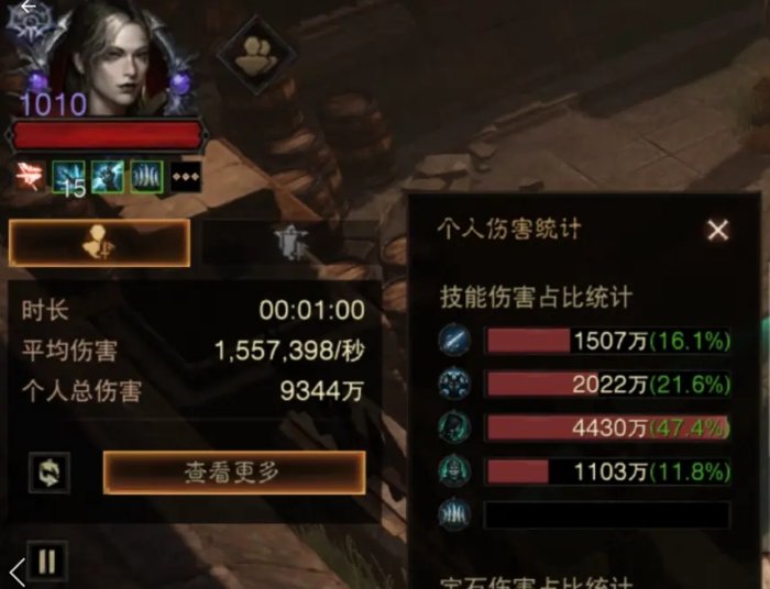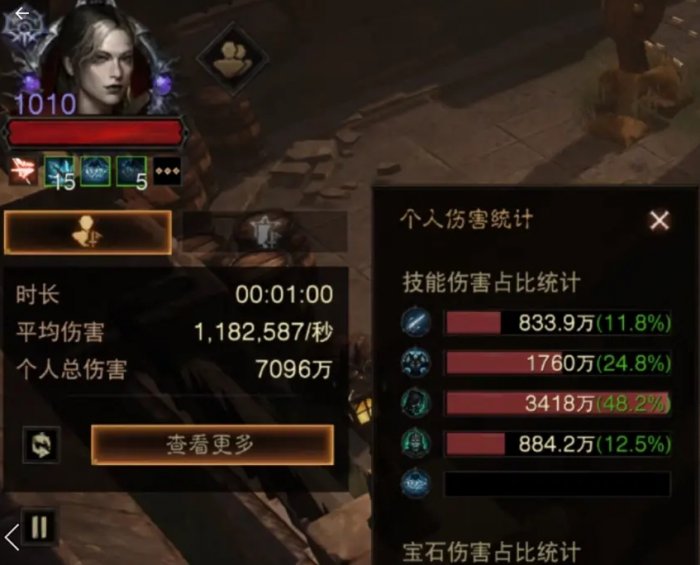 绿装使用的4牧羊2魔眼。这一套的1分钟木桩输出能力如下: