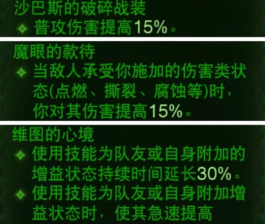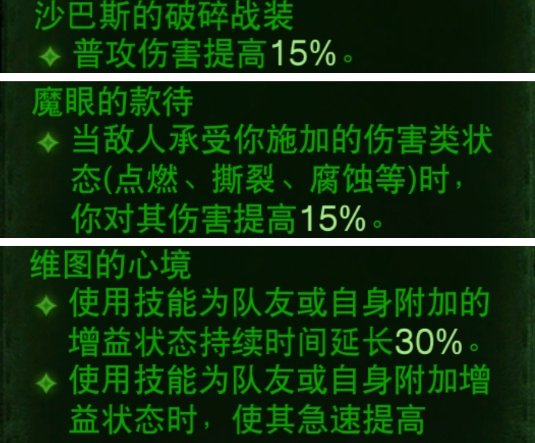 4维图可以给到推射、憎恨、飞刀3个BUFF技能持续时间和BUFF后的攻速爆发,2沙巴斯提高我们的普攻伤害,2魔眼全程触发风火助威也是直接给我们15%的伤害完美契合。
