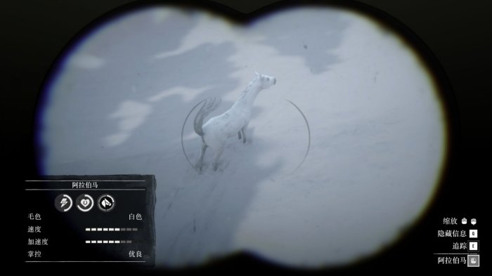 白阿拉伯马是整个游戏中驯服过程最耗时的马,不论是接近还是上马后的安抚,都需要大家要有耐心的同时,保持极高的注意力。