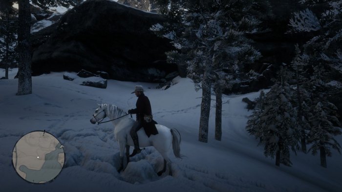 去抓马前需要保持血量和体力处于健康状态,并携带适宜冬季穿着装束进雪地后换装,否则亚瑟会掉状态,不利于此次行动(装束可以带冬季神枪手套装 进入雪地后按Tab R 切换到马匹 最下方装束 QE切换)