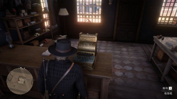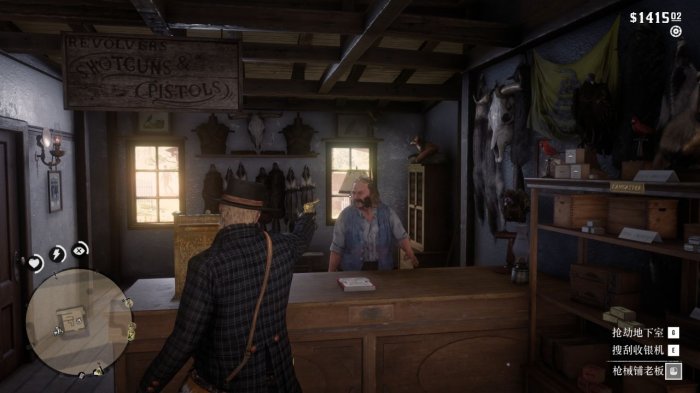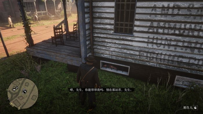 跟着声音来到枪械铺右侧,和小铁窗里的人对话触发抢劫任务