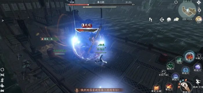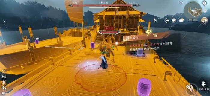 副本机制: 翻江倒海,泰山压顶两个技能没什么特别的,重点是铁布衫,需要用落雷将其破除,另外将其拉到船头桅杆处用落雷将铁布衫破除,可以完成成就【专打命门】。