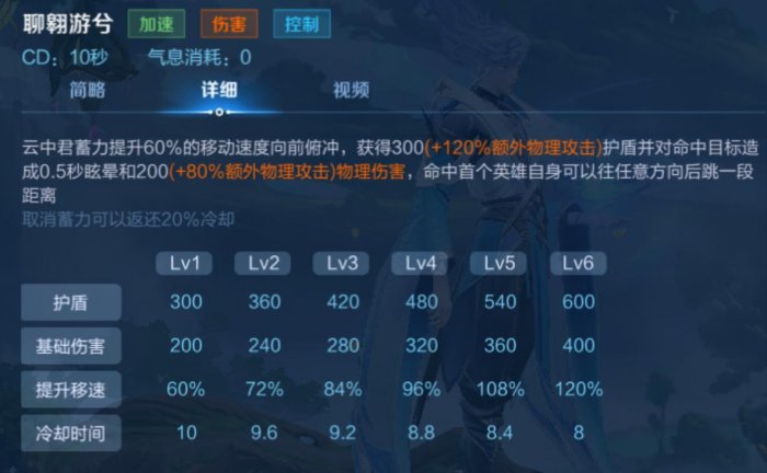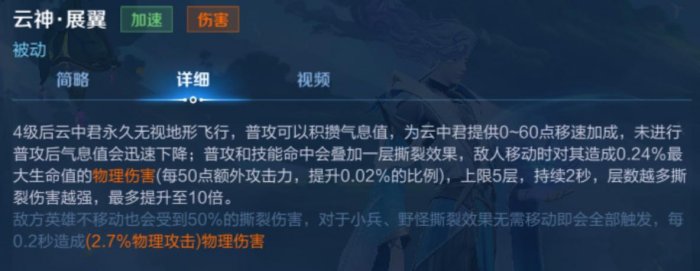 这一点的变化意味着云中君不再是一个前期强势英雄,因为不能飞机动性方面有极大的削弱,只有安稳发育到4级再打架会比较好。