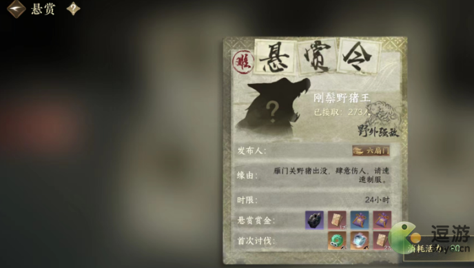 6、大悬赏:在悬赏令里【野猪王】首次给的讨伐奖励里面有给一个金色内功。
