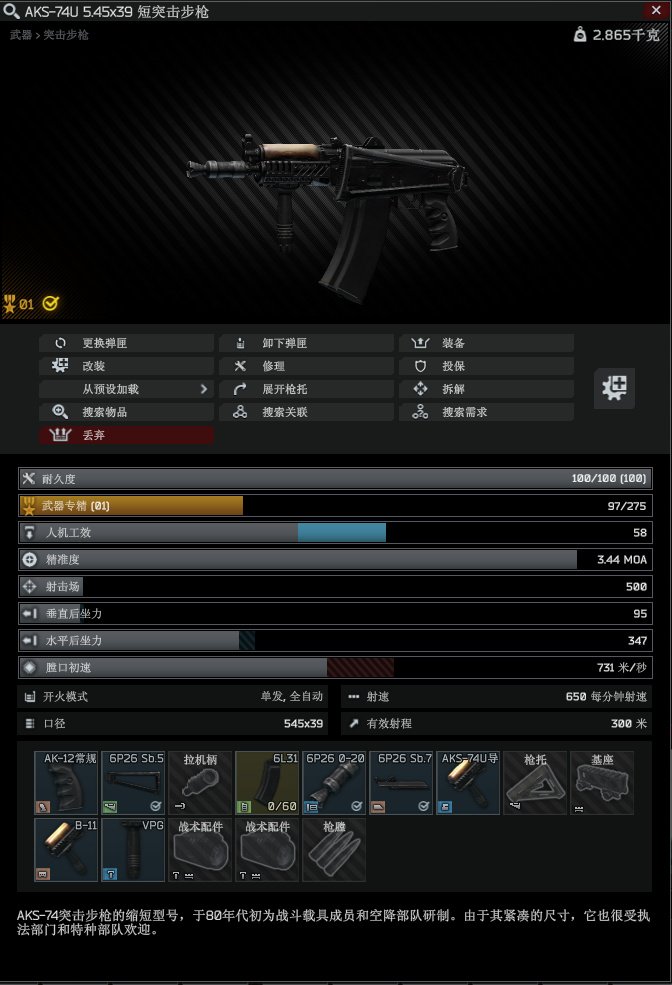 枪匠2开局送一把aks74u,除了弹匣,其他的都可以从商人那边买,60发的弹匣可以在藏身处搓,
