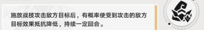 1)负面效果都是可以被抵抗的,而这个行迹可以降低敌人的效果抵抗,增加队伍的概率;