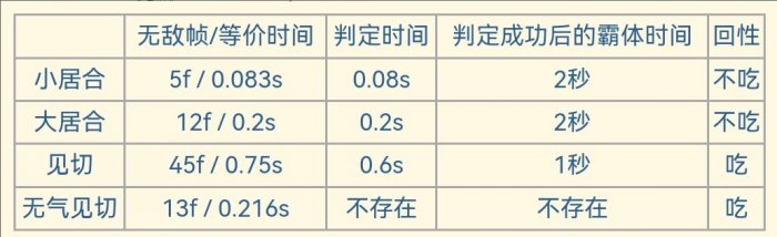 判定点一,是否有足够的气。若没有气或者气不足时无敌帧很短约0.13秒,同时清空气槽,消耗50耐力。若气足够,则获得约0.75秒无敌(若有回避性能强化,延长无敌时间),同时出现判定点二,判断使用出见切和怪物出招命中落点的时间差是否在0.6秒,若判定成功,清空气槽,消耗50耐力,获得一秒霸体。