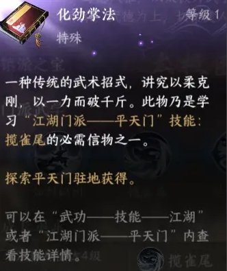 首先是技能:揽雀尾所需要的信物化劲掌法!