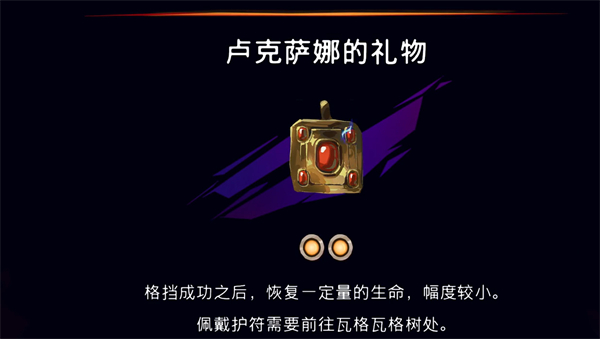 卢克萨娜的礼物效果也是很不错的,可以去帮助玩家磨炼操作,格挡成功后能恢复一定生命值,这效果非常奈斯,打怪终于有续航了。