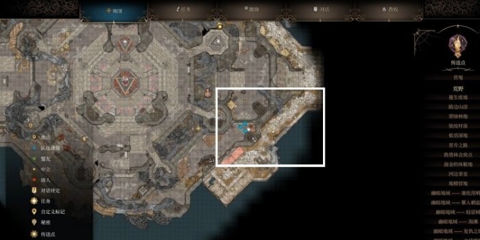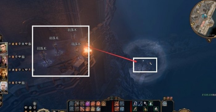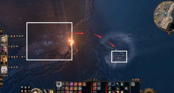 爬上板条箱,使用羽落术直接跳到下方。当然这里也可以选择气化形态钻猫洞。下来后背后的西门就是监狱入口。接着我们就可以继续往码头未探索区域了