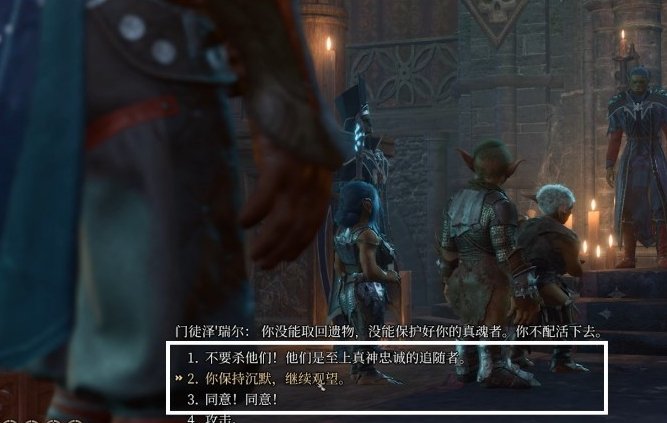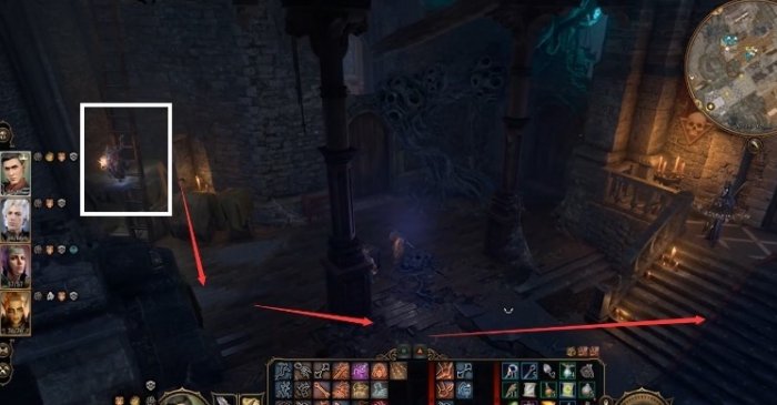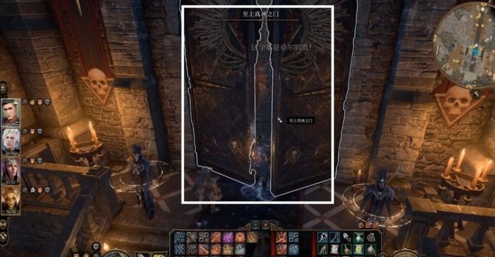 查看完上层架子的裂开墙壁后,接着我们回到正厅准备正式进入。在进去前推荐大家与门口两个守卫对话