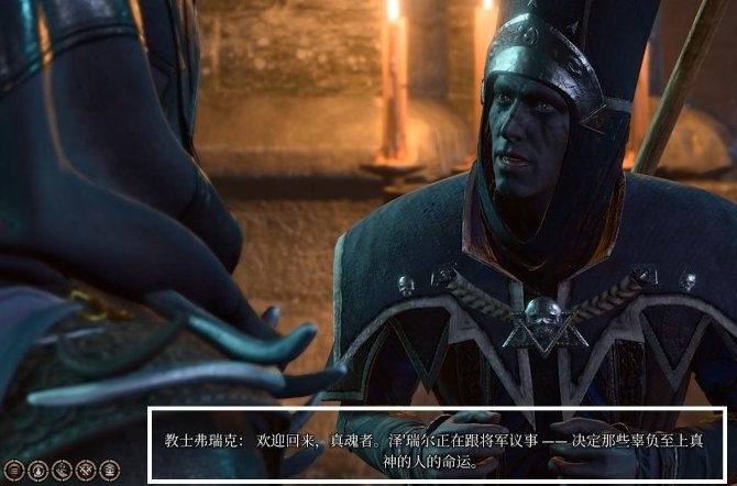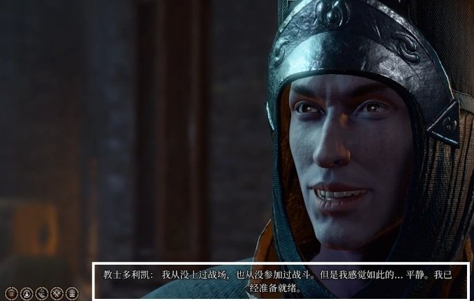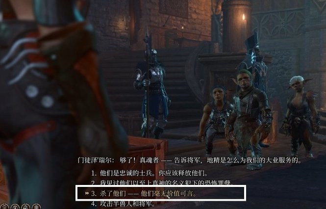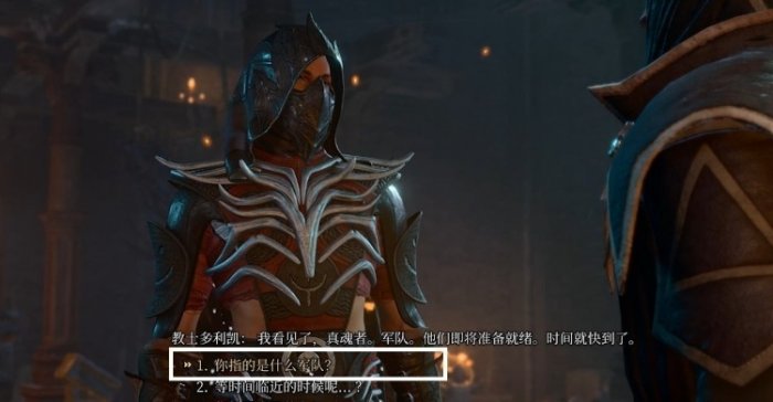左边的多利凯选择选项1后,从他口中可以得知这里聚集的部队鱼龙混杂,而多利凯本人甚至从未参加过战斗。另一边的弗瑞克则告知了门内的情况