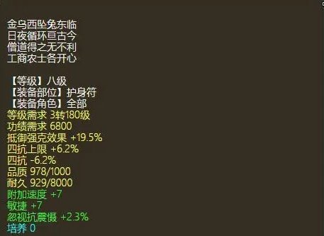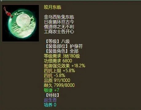 PK护身符2:黄字四抗,绿字敏捷,特技:返生香