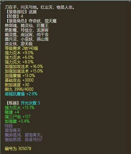 四阶武器:篮字忽视震慑搭配日常使用,炼器主敏捷,有克更佳;
