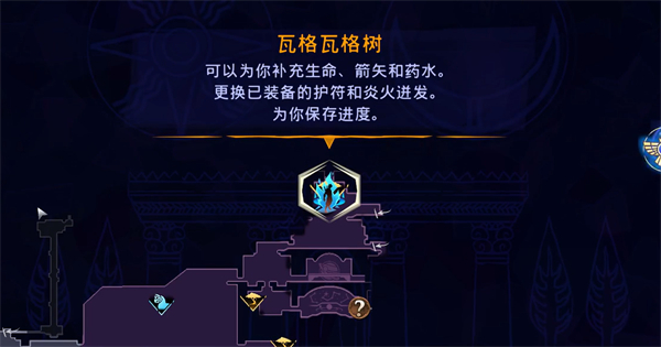进入下方平台内部,就不会被攻击到了,这里面刚好就有个护符,瓦格瓦格树就在上方,直接就能更换护符装备。