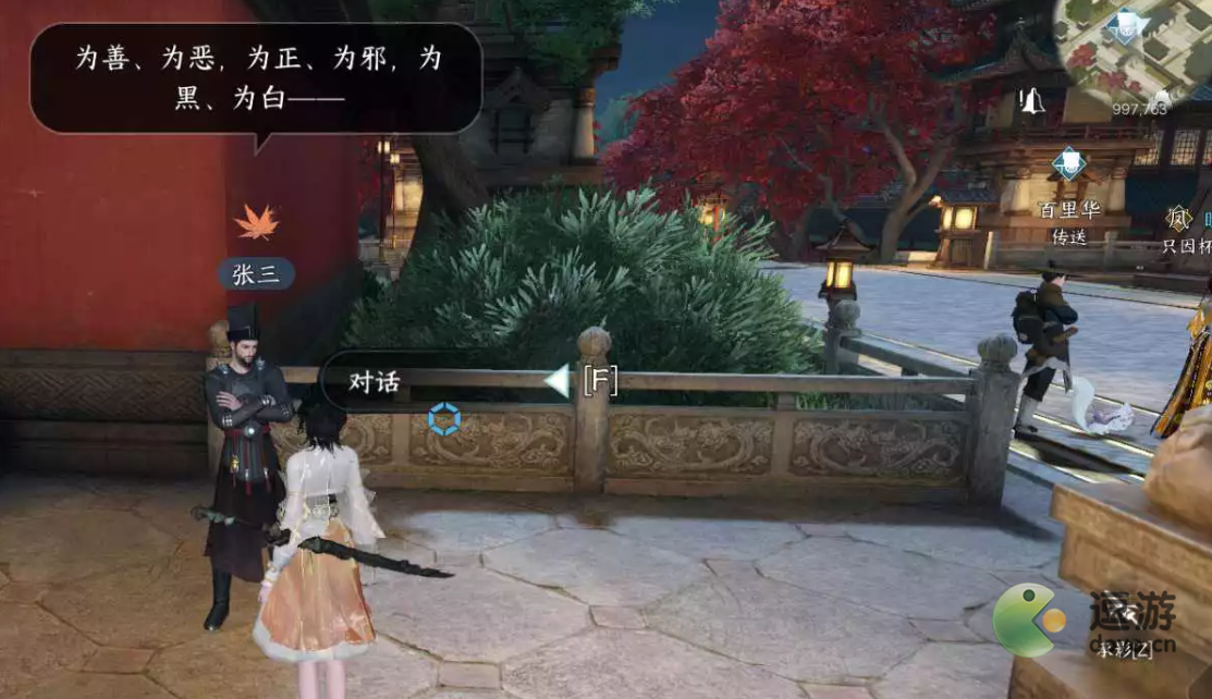 2、然后在杭州(997,763)与张三对话接取任务