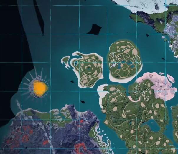 2、跨海,来到要塞岛上方的孤岛,君王美露帕的活动区域就如下图所示。(白天活动型)
