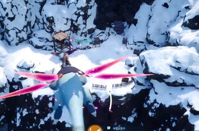 3、在传送点左上方的悬崖上,会看到一个洞口,那就是隐藏区域冰山坑道。