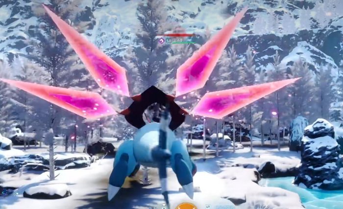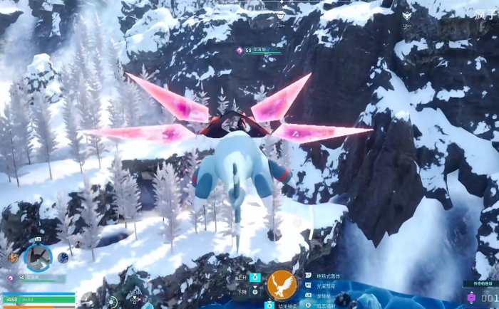 2、玩家需要借助飞行坐骑帕鲁,往地图的左上角飞(跨越不溶湖的湖面)